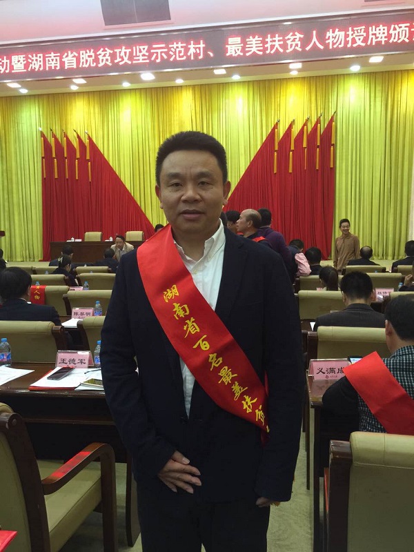 2016年10月14日,湖南長沙“扶貧日宣傳活動暨湖南省脫貧攻堅示范村、最美扶貧人物授牌頒證儀式”在湖南九所賓館會議中心隆重舉行。參加會議的主要領(lǐng)導(dǎo)有省人民政府副省長戴道晉、省政府副秘書長曹英華、省扶貧辦、湖南日報社等單位主要負(fù)責(zé)人。經(jīng)過推薦申報、篩選初審、公眾投票和組織專家評審,我司董事長趙忠榮獲 “湖南百名最美扶貧人物”稱號。
