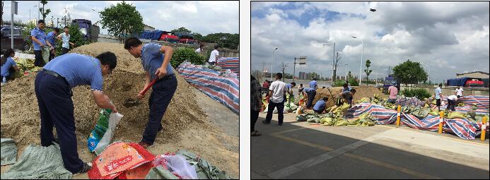 長坪加油站地處湘江邊,因附近堤岸有潰堤危險(xiǎn),站經(jīng)理盧佳麟立馬組織站內(nèi)員工利用站內(nèi)消防沙組織救援,零管中心唐玉林也馬上趕到,帶領(lǐng)站內(nèi)員工通宵奮戰(zhàn),在加油站周邊筑起高高的防護(hù)墻,嚴(yán)密的保護(hù)著加油站的安全。