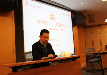 在這次學習貫徹黨的十九大精神座談會上,首先由副總裁胡燦明導讀題為“學習十九大 走進新時代”的十九大報告核心內容;隨后各參會人員踴躍討論,積極發(fā)言,分享了對十九大會議報告的學習心得和體會,紛紛表示將不忘初心,為公司發(fā)展壯大添磚加瓦。